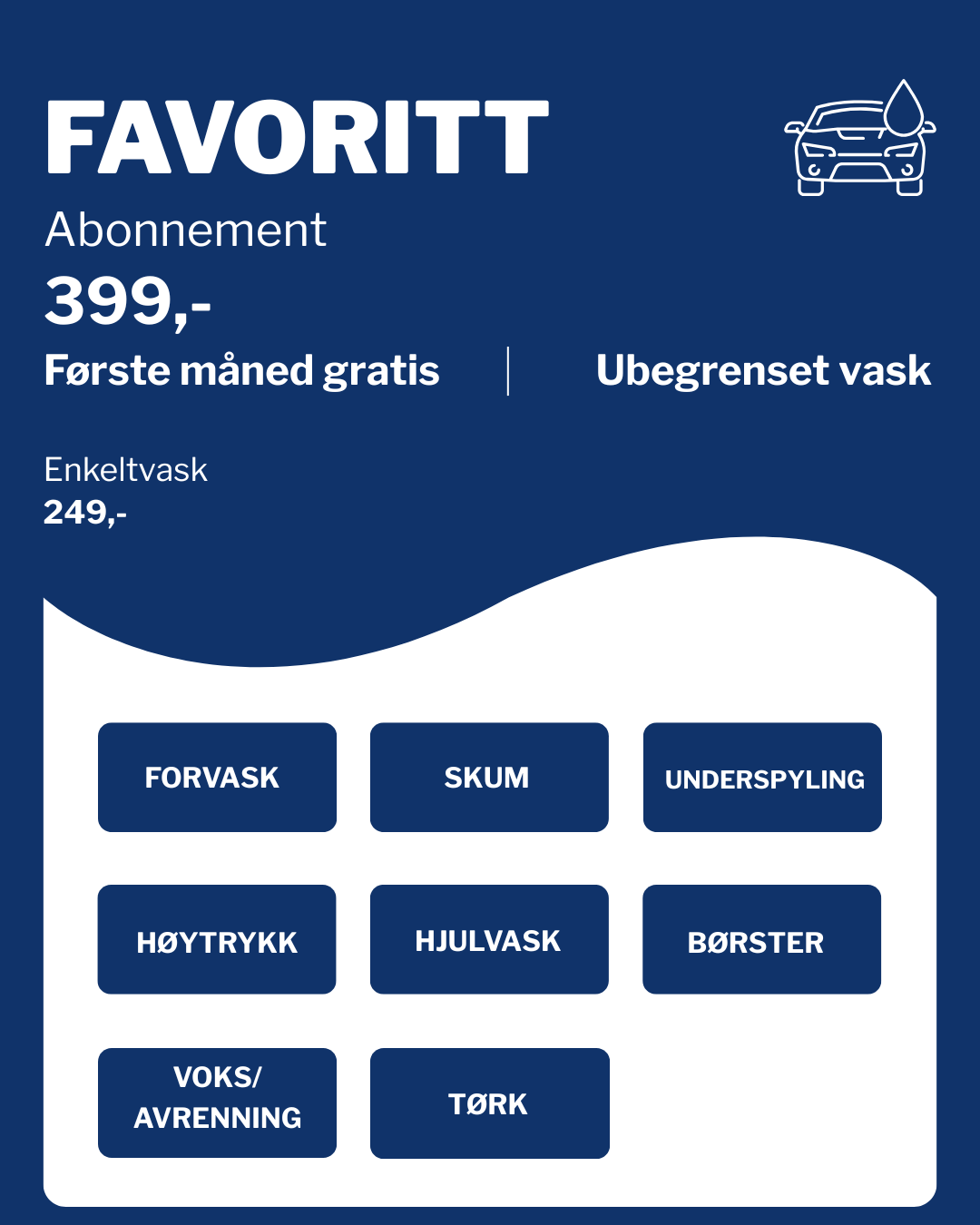 Last ned EasyWash-appen, legg inn skilt, betaling og velg abonnement – så er du i gang.