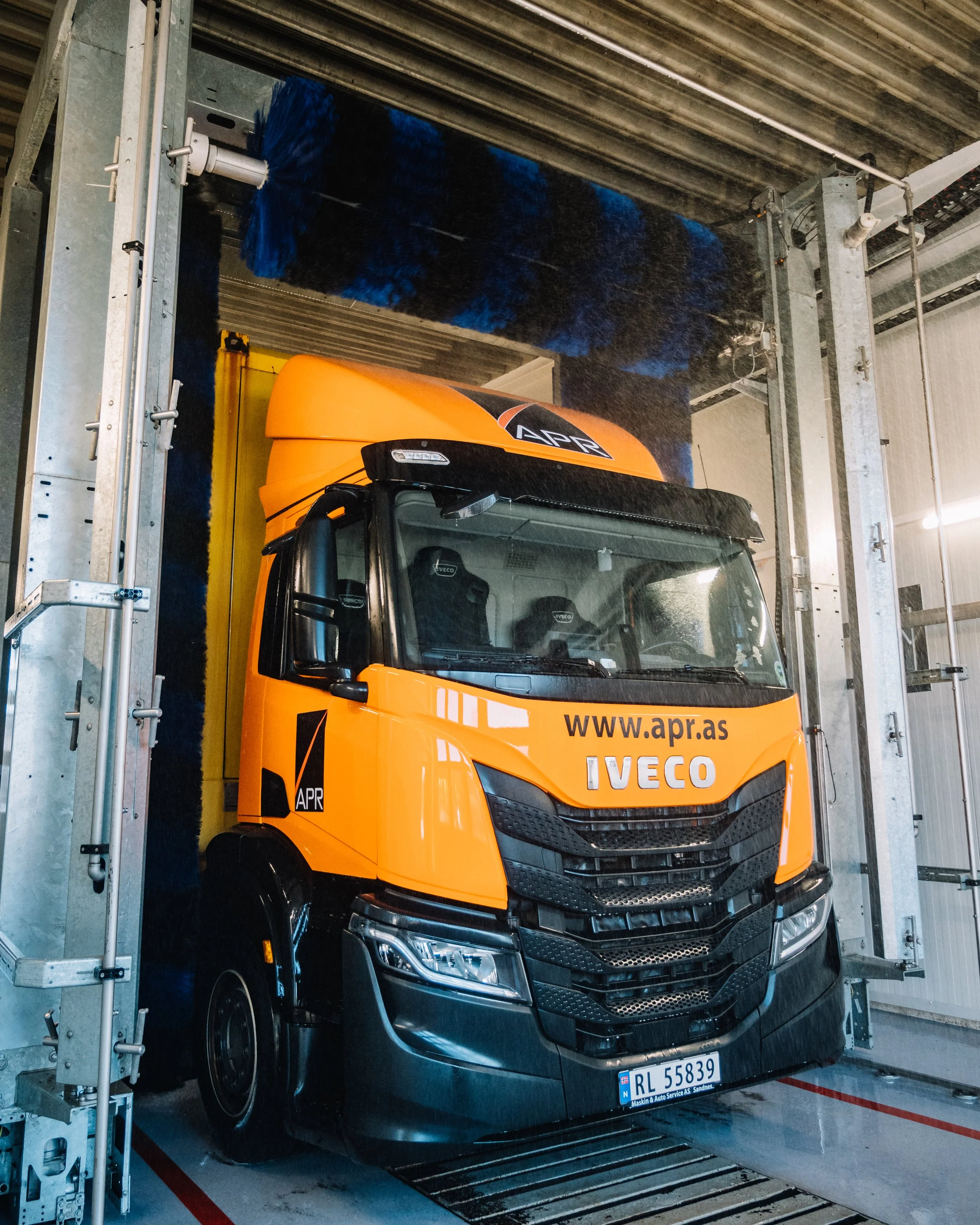 Vi har to døgnåpne vaskehaller på Orstad og Vardheia, tilpasset store kjøretøy, med programmer som tar salt, sørpe og asfaltrester effektivt.